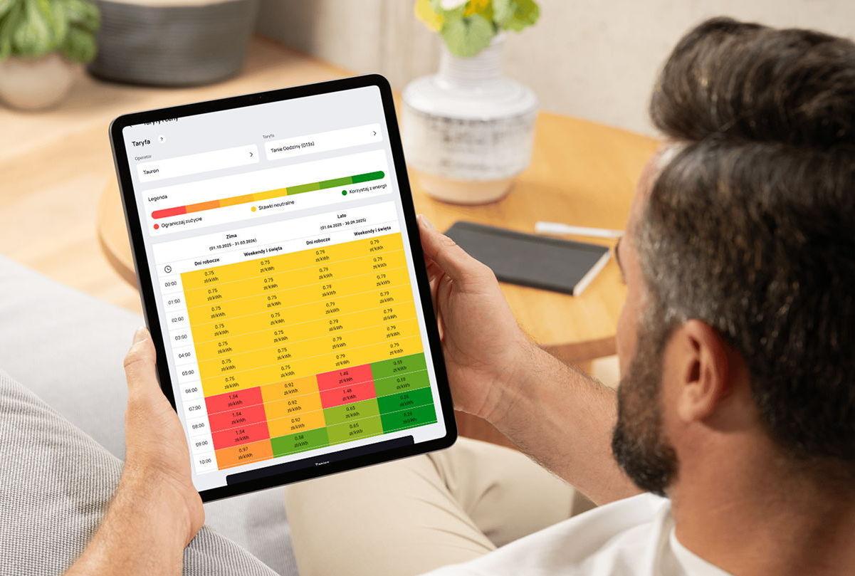 i konfrontowania ich z cenami energii. Tym samym korzystanie z urządzeń domowych, jak klimatyzator, czy zmywarka może zostać zaprogramowane w godzinach, kiedy energia jest najtańsza.